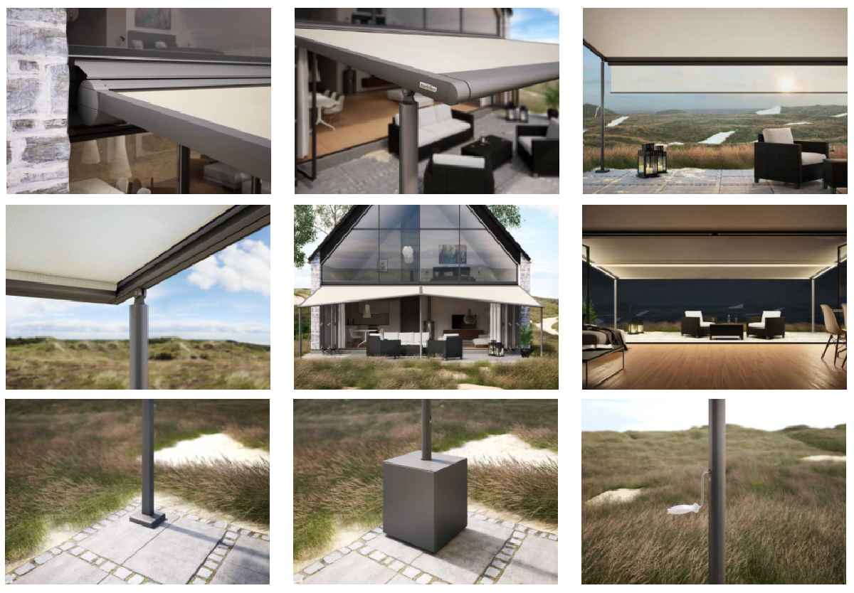 markilux pergola Markisensystem In Sachen Sonnen- und Wetterschutz fahren Sie mit der markilux pergola ganz groß auf. Das Markisensystem auf schlanken Säulen und mit seitlichen Führungsschienen, basierend auf der designprämierten Wintergartenmarkise markilux 8800, wirft mit bis zu 6 Meter Ausfall weiträumig Schatten. Zugleich sorgen die Säulen neben den Befestigungspunkten an der Fassade für hohe Stabilität und Windsicherheit bis Windstärke 6 (Windwiderstandsklasse 3). Musste man bisher die Säulen mit einem Betonfundament fixieren, gibt es nun auch die Möglichkeit, für einen flexiblen Einsatz, Beschwerungskästen zu verwenden. Für die notwendige Standsicherheit sind die Kästen mit mindestens 100 Kilogramm Kies zu befüllen. Das pergola System bietet damit nicht nur den Vorteil, dass man es durch die optimale Verteilung von Zugkräften auch an Hausfassaden mit geringerer Traglast befestigen kann. Ab jetzt lässt es sich zudem überall dort einsetzen, wo ein Betonfundament bauseitig nicht möglich ist. Damit ist man bei der Wahl der zu beschattenden Fläche sehr flexibel. Die serienmäßig motorbetriebene Markise bietet markilux in den Varianten pergola 110 und 210 an. Beide Varianten lassen sich am Fußende der Säulen für einen Höhenausgleich um gut zehn Zentimeter verstellen. Bei der pergola 210 kann man zudem, je nach Markisengröße, eine der beiden Säulen um bis zu 40 Zentimeter absenken. So kann Regenwasser auch dann gut ablaufen, wenn sich die Neigung der Markise bauseitig nicht auf mindestens 14 Grad einstellen lässt. Die markilux pergola lässt sich als gekoppelte Anlage auf bis zu 15 Meter Breite erweitern. Mit markilux Schattenplus, tracfix sowie einer Vielzahl an Beleuchtungsoptionen und Säulenvarianten haben Sie alle Möglichkeiten, Ihren Lieblingsplatz im Freien nach Belieben zu gestalten. Wie kräftig die Sonne scheint oder woher der Wind auch weht: Mit Ihrer markilux pergola haben Sie immer die Ruhe weg.