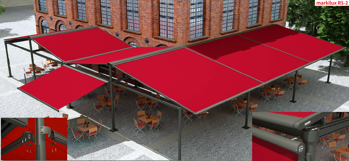 markilux RS-2 Są sytuacje, w których standardowy model nie wystarcza, aby spełnić Twoje specjalne wymagania. W takich sytuacjach wymagane są rozwiązania systemowe. System ramy markilux RS-2 jest niezwykle wszechstronny i elastyczny. Różne moduły łączą się z różnymi markizami w celu stworzenia prawdziwego krajobrazu markizy. Nie musisz robić żadnych kompromisów jeśli chodzi o rozmiar, a zakres dostępnych akcesoriów jest imponujący. Możesz wybierać pomiędzy stanowiskami okrągłymi i kątowymi. Prawie niemożliwe jest opisanie markilux RS-2: wystarczy po prostu doświadczyć tego we własnym ogrodzie.